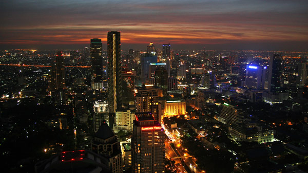 W Bangkoku chmury drapie mnóstwo wieżowców. Na szczycie niektórych z nich znajdują się otwarte restauracje i bary. Tak, otwarte, to znaczy, że nad głową nie ma sufitu, tylko hula wiatr. Gwiazd nie widać, bo łuna nad miastem jest bardzo jasna. Drink w takim barze kosztuje kilkaset bahtów, ale jeśli się nie ma lęku wysokości, to warto zobaczyć miasto z góry nocą. A jeśli się ma lęk wysokości – to też warto.