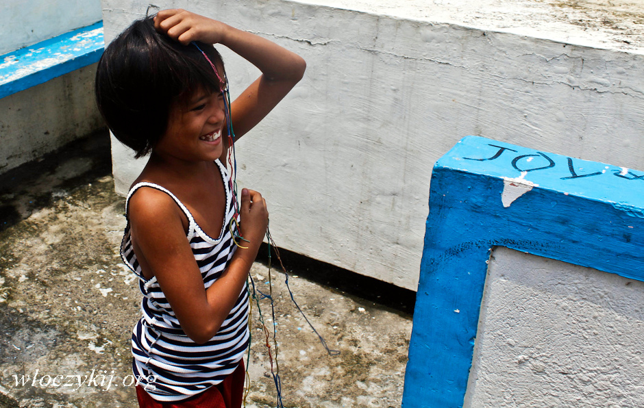 W efekcie odwiedziłem kolejno slumsy w Navotas, Rosario i Pasay. Choć zapach i atmosfera była straszna, to mieszkańcy tego miejsca robili wszystko, by zachować trochę normalności. Uśmiechali się, chętnie zagadywali (choć mało kto znał tam angielski), pozowali do zdjęć, częstowali ciasteczkiem. Nie można też zapominać, że Filipińczycy to bardzo religijni ludzie, a zwłaszcza dotyczy to najuboższych. Co zresztą widać tu na każdym kroku. Grupka dzieci biegała cały czas za mną, niektóre pozowały, inne dotykały mojej nietutejszej fryzury (dredy).